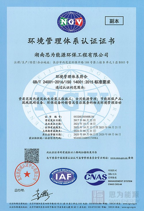 環(huán)境管理體系認(rèn)證證書