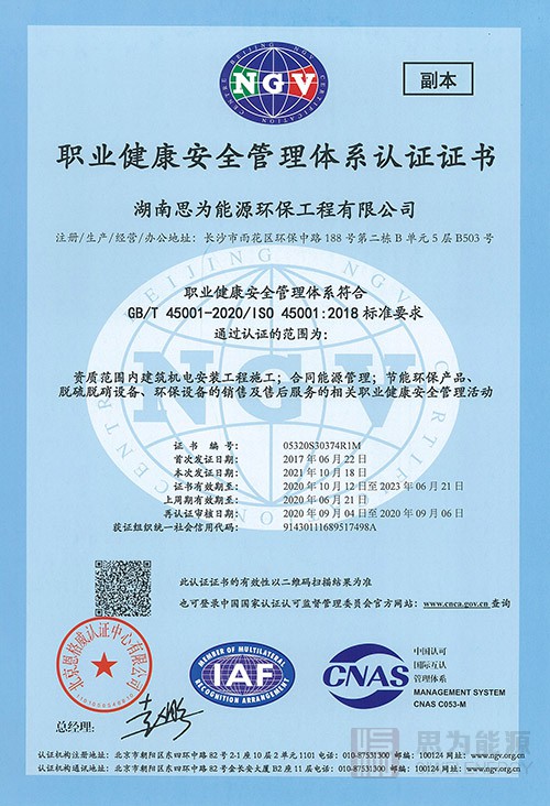職業(yè)健康安全管理體系認(rèn)證證書